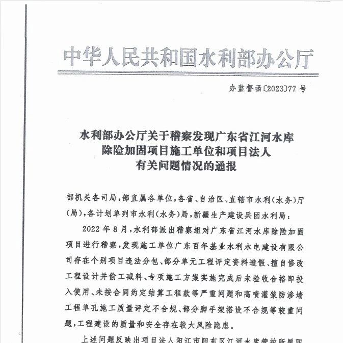 擅自修改设计并偷工减料!水利部通报江河水库除险加固稽查发现的问题