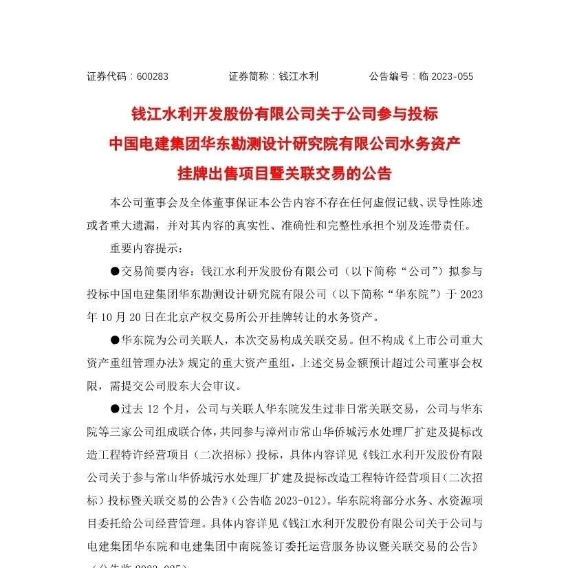 钱江水利:已开展与华东院、中南院的9家水务公司托管项目股权转让前期准备工作