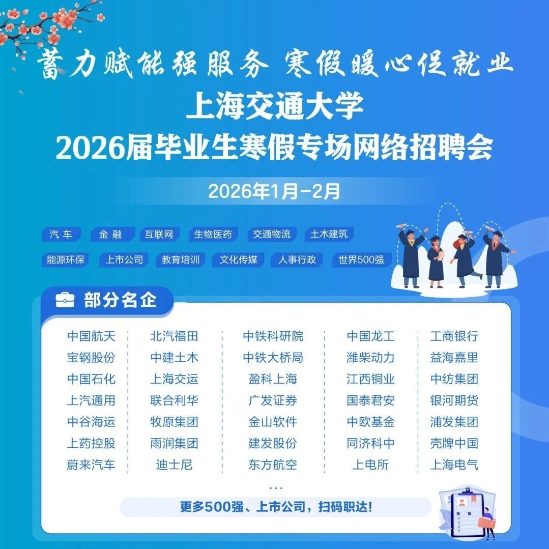 招聘资讯 | 上海交通大学2026届毕业生寒假专场网络招聘会 安泰职发 · 公众号 · · 12 小时前 · |