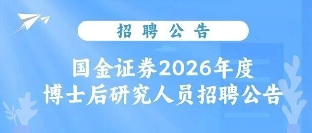 博士招聘 | 国金证券2026年度博士后研究人员招聘公告 安泰职发 · 公众号 · · 2 周前 · |