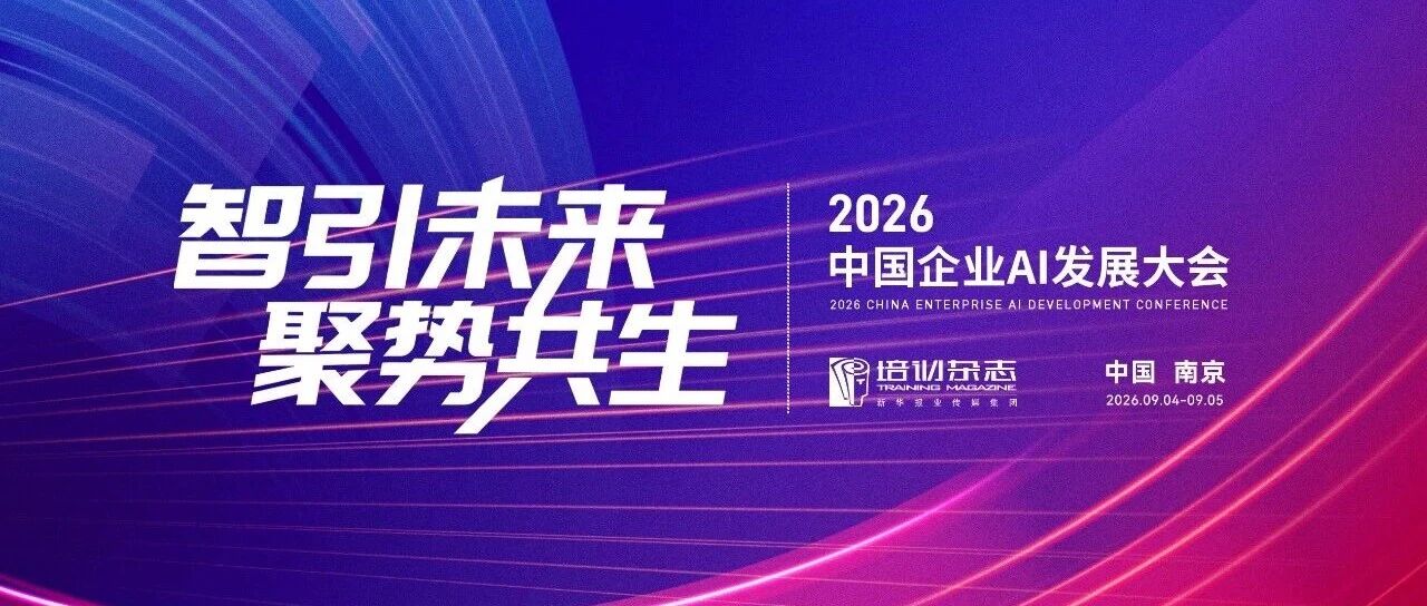 2026中国企业AI发展大会,定档九月·南京!四大亮点抢先看 培训杂志 · 公众号 · 培训 · 昨天 · |