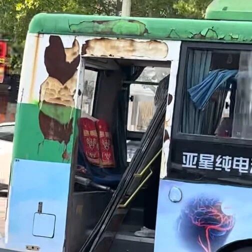 网友称江苏一公交车掉漆锈迹斑斑,后门掉了仍在运营,公交公司:突然掉落的
