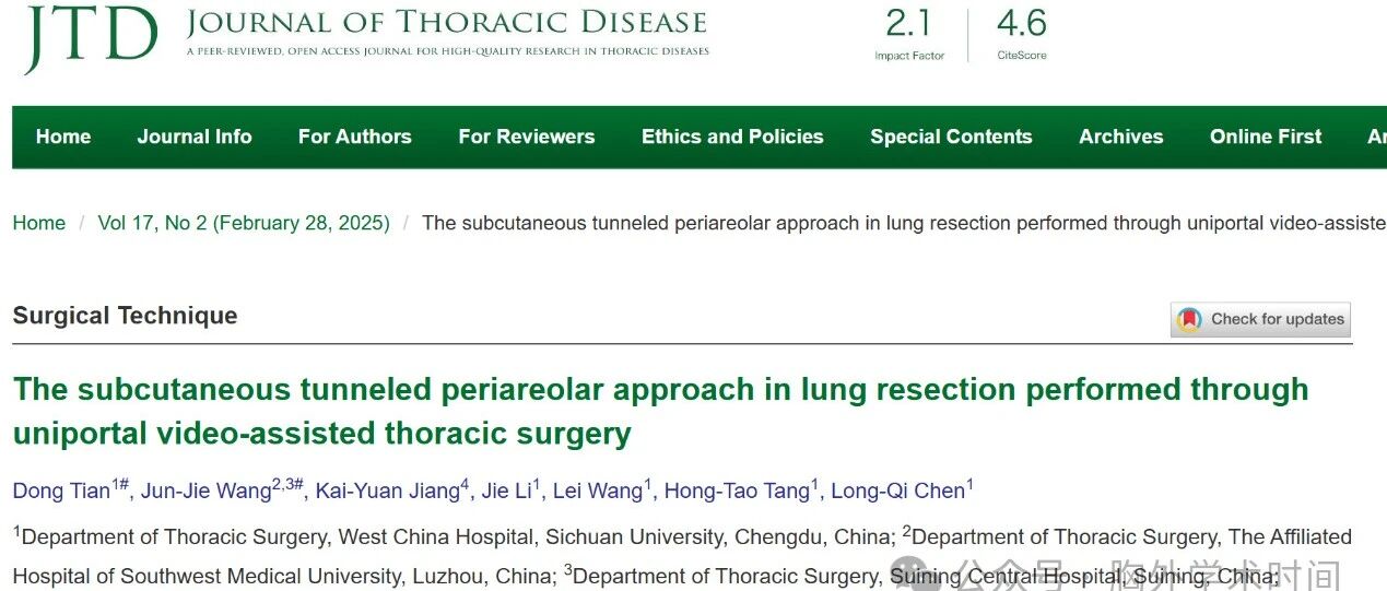 胸“星”动向|经乳晕周围切口皮下隧道式单孔胸腔镜辅助肺切除术
