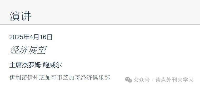 鲍威尔主席就经济前景发表讲话