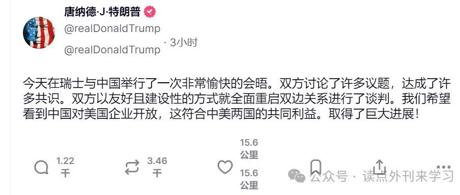 中美经贸日内瓦会晤联合声明