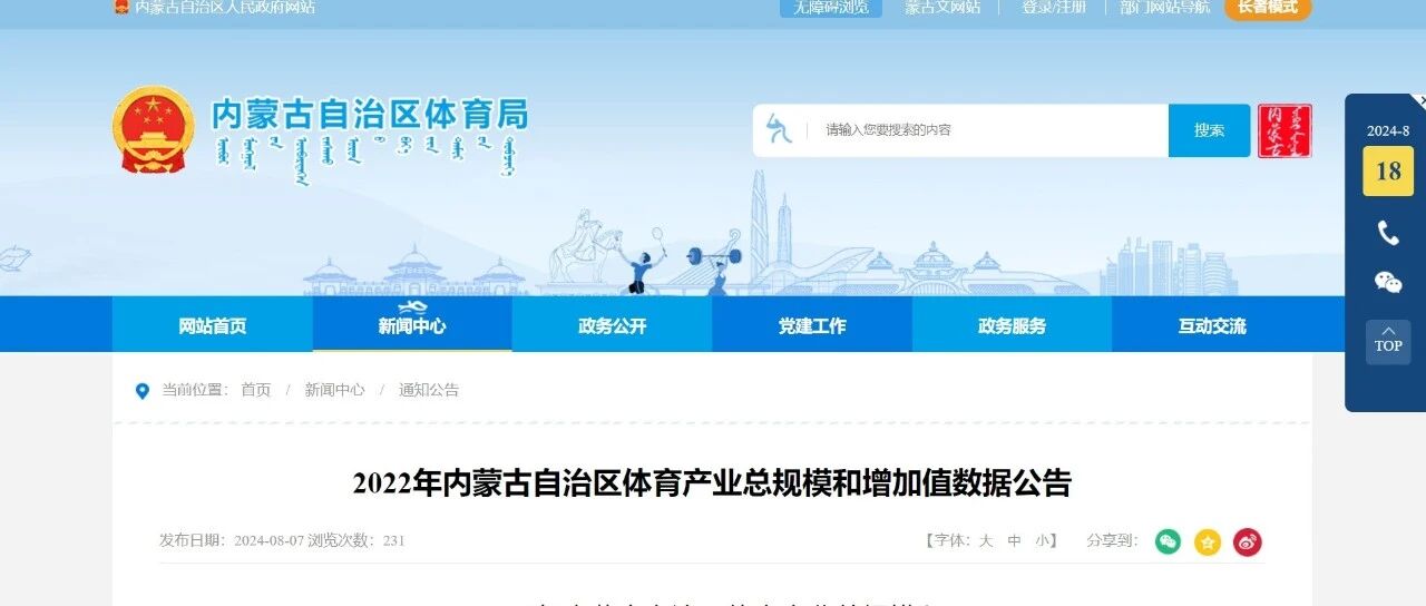 2022年内蒙古自治区体育产业总规模和增加值数据公告 体育蓝皮书 · 公众号 · 体育 · 1 年前 · |