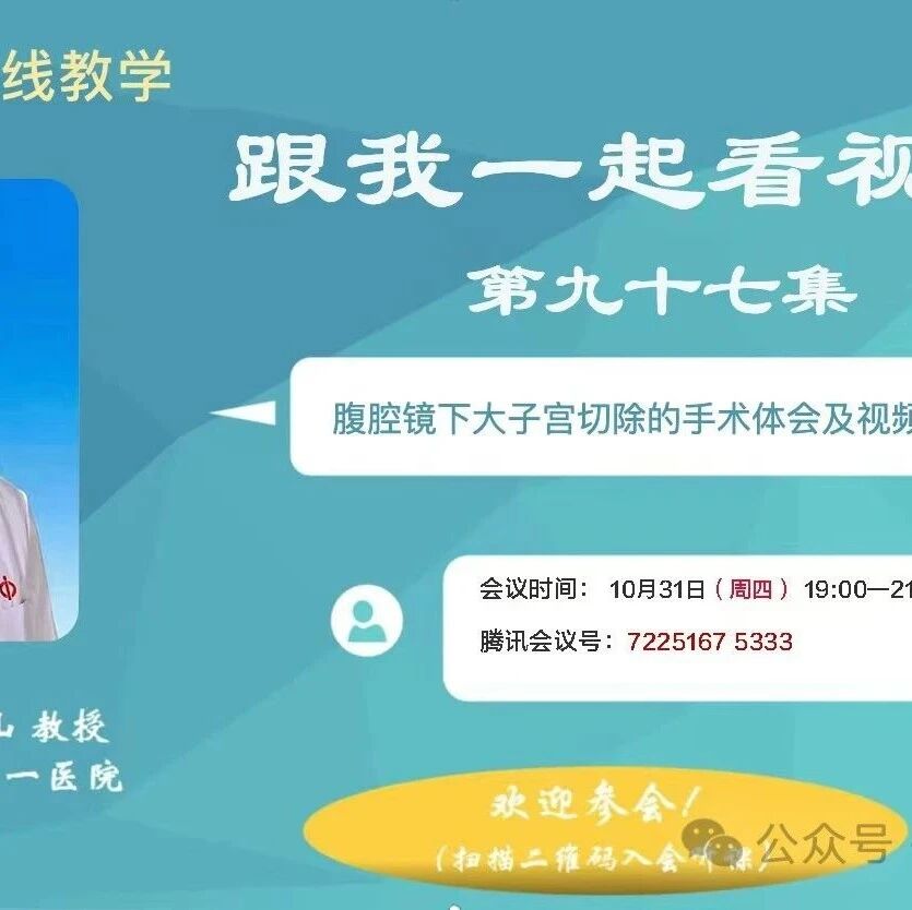 每周1播 | 11月01日妇科内镜手术演示直播预告(第58期) 中山一院妇科 · 公众号 · · 1 年前 · |