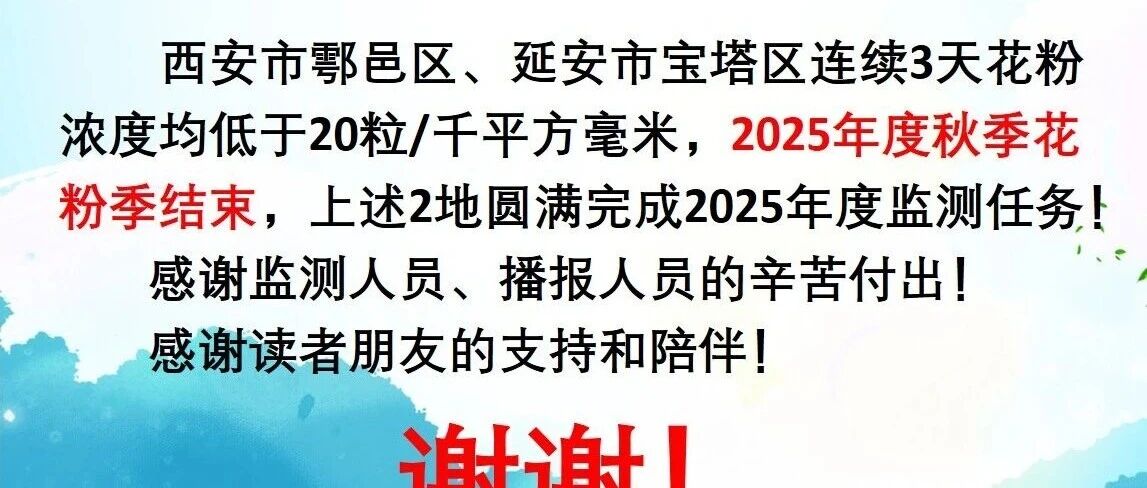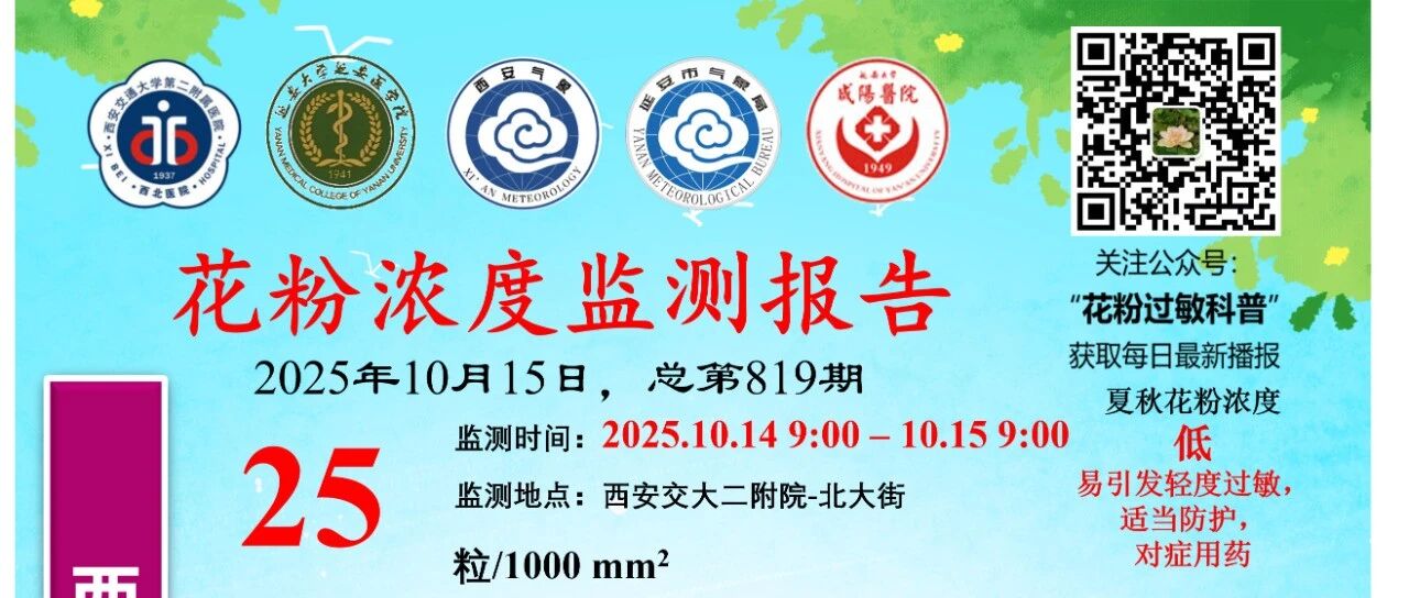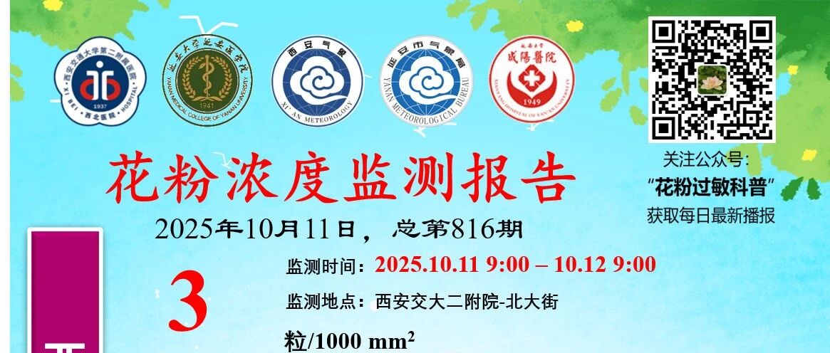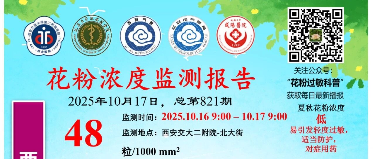 2025年10月14日 西安-延安-咸阳花粉浓度监测报告(更新咸阳、延安及全国49城花粉浓度数据) 花粉过敏科普 · 公众号 · · 2 月前 · |