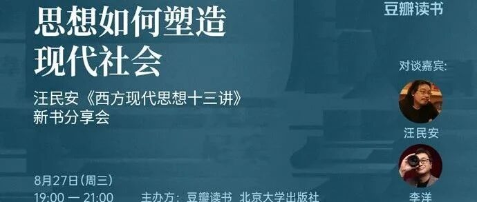 今晚直播|汪民安×李洋:思想如何塑造现代社会 豆瓣读书 · 公众号 · 读书 · 1 月前 · |