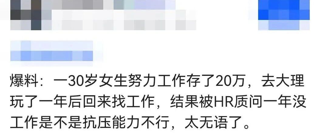 30岁,努力工作存了20万,去大理玩了一年后回来找工作,结果被HR质问一年没工作是不是抗压能力不行,... 算法与数据结构 · 公众号 · 算法 · 2 周前 · |