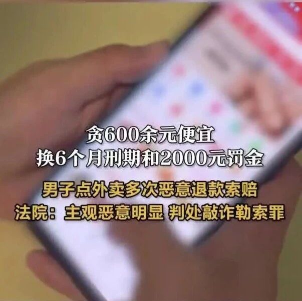男子点外卖多次恶意退款索赔,累计金额600多元!法院:犯敲诈勒索罪,判刑6个月、罚金2000元 小莉帮忙 · 公众号 · · 6 小时前 · |