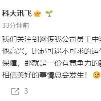 科大讯飞回应“员工中1500万彩票后离职”