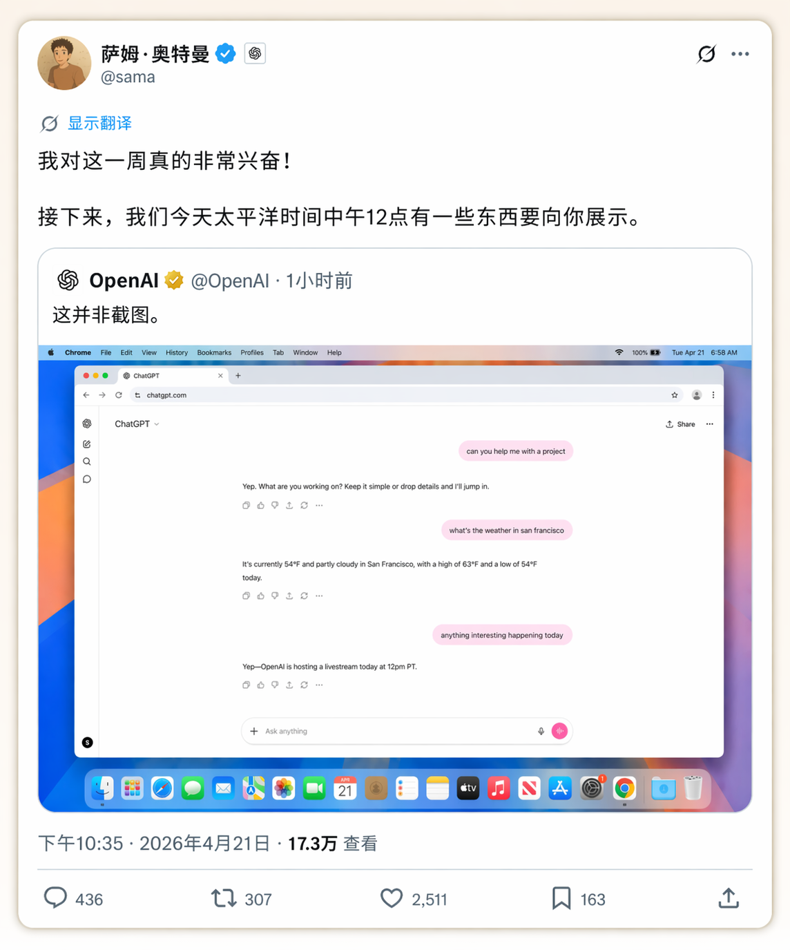 龙爪槐守望者 · 萨姆·奥尔特曼官宣GPT image2发布! · 昨天 |