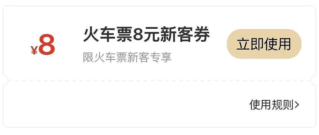 同程旅行 · 【通知】西北专属出行福利已到账,8元火车票待使用 4 天前 |
