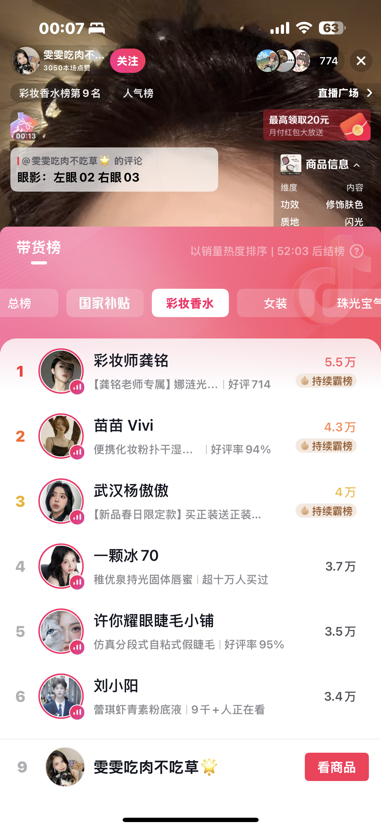 TomXu · 打开抖音直播,选择「彩妆香水」榜单…… · 2 天前 |